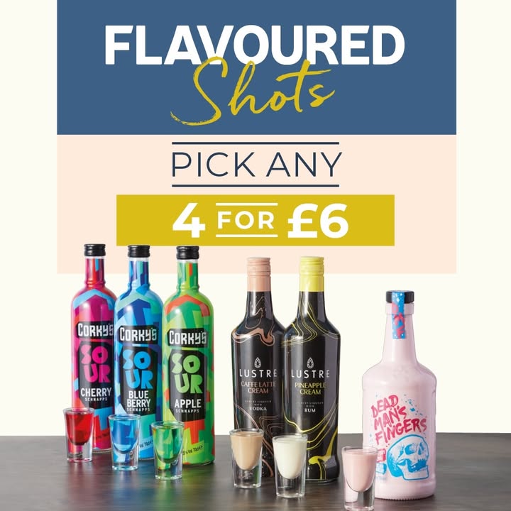 🍓🍍 Any 4 flavoured shots for £6 🍒💥