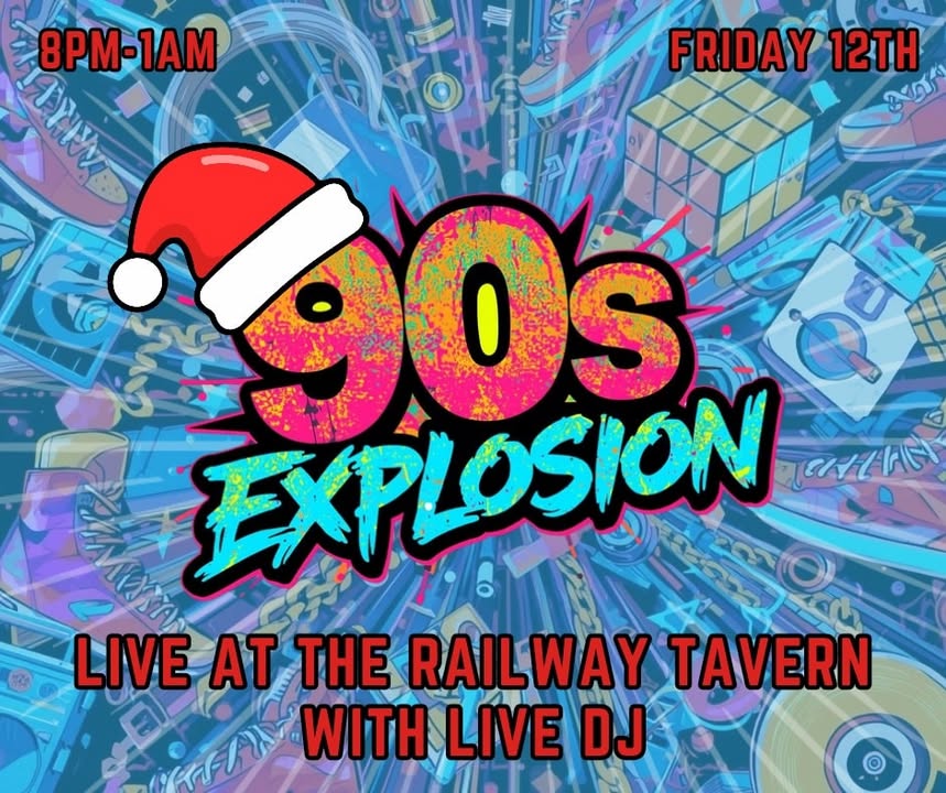 Get ready to rewind the clock… 90s Explosion hits The Railway Tavern this Friday! 🎉🔥