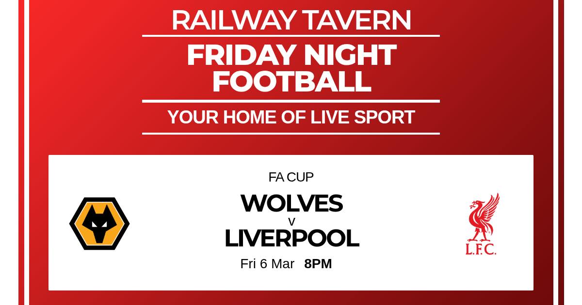 ⚽️🏆Friday night football live at The Railway Tavern🏆⚽️