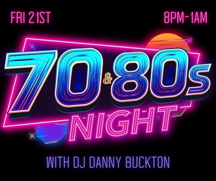 Join us for 70s and 80s Night with DJ Danny Buckton bringing all the biggest hits from two iconic decades. From disco grooves to classic 80s anthems, it’s going to be a dance floor takeover! 🕺💃
