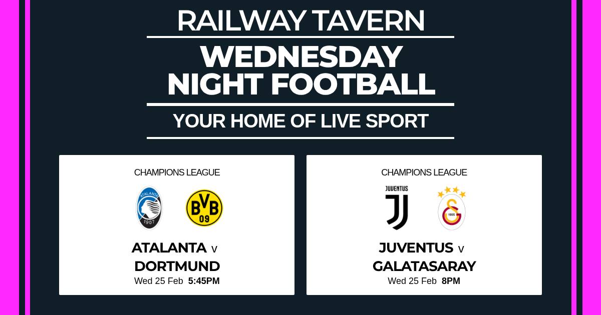 ⚽Wednesday night champions league action live at The Railway Tavern⚽