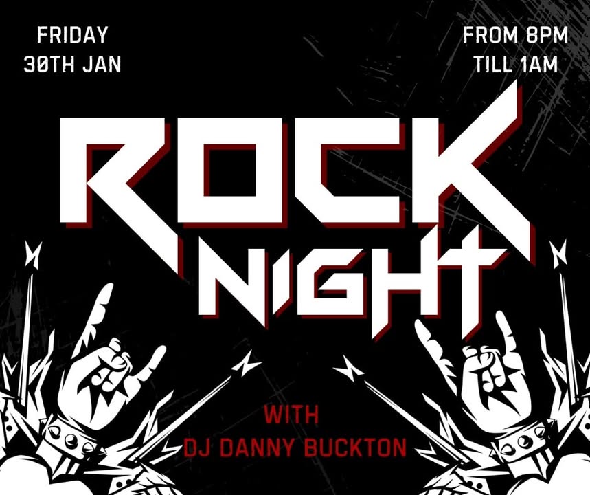 Join us on Friday 30th January for Rock Night with DJ Danny Buckton bringing all the rock anthems, classics, and big tunes from 8pm till late. Expect loud guitars, big singalongs, and a packed dancefloor. 🤘