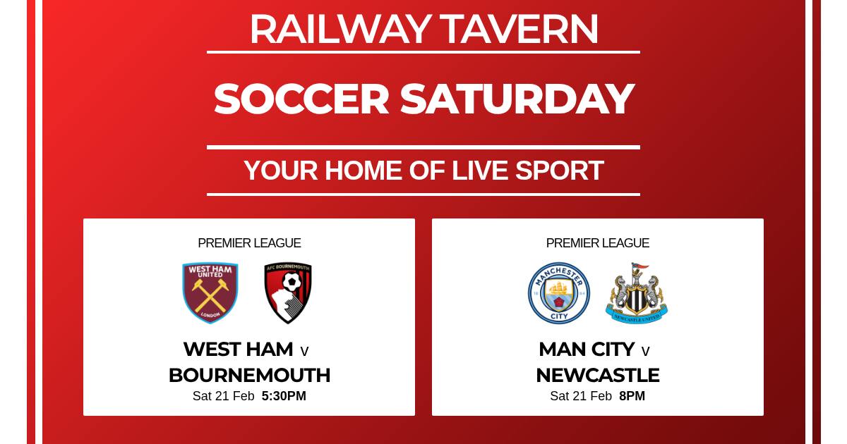 ⚽Saturday's Football action live at The Railway Tavern⚽