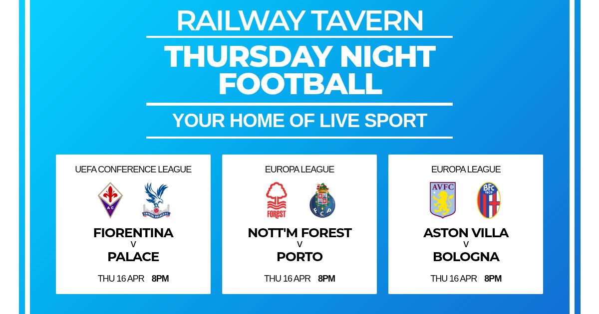 ⚽Tuesday night champions league live at The Railway Tavern⚽